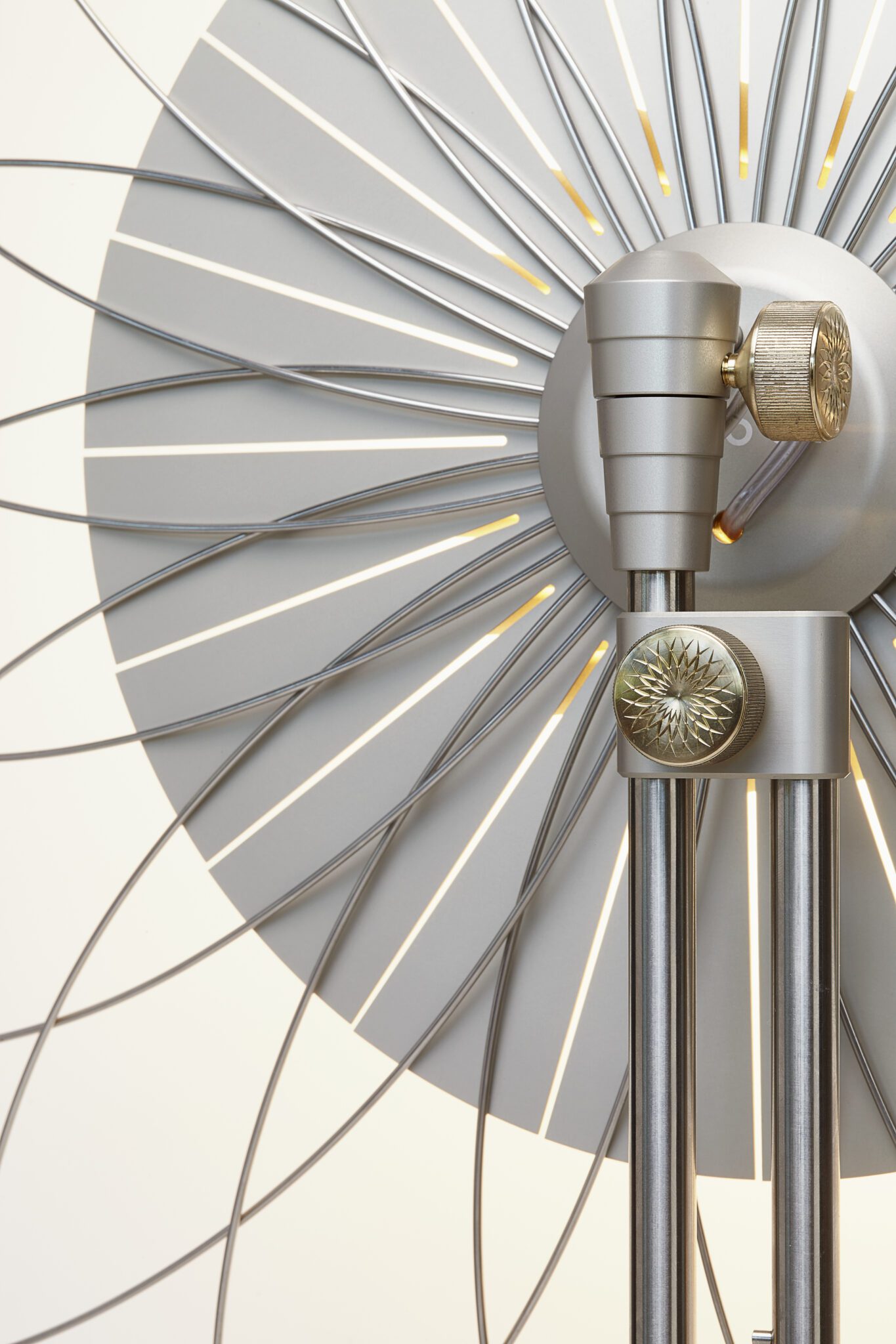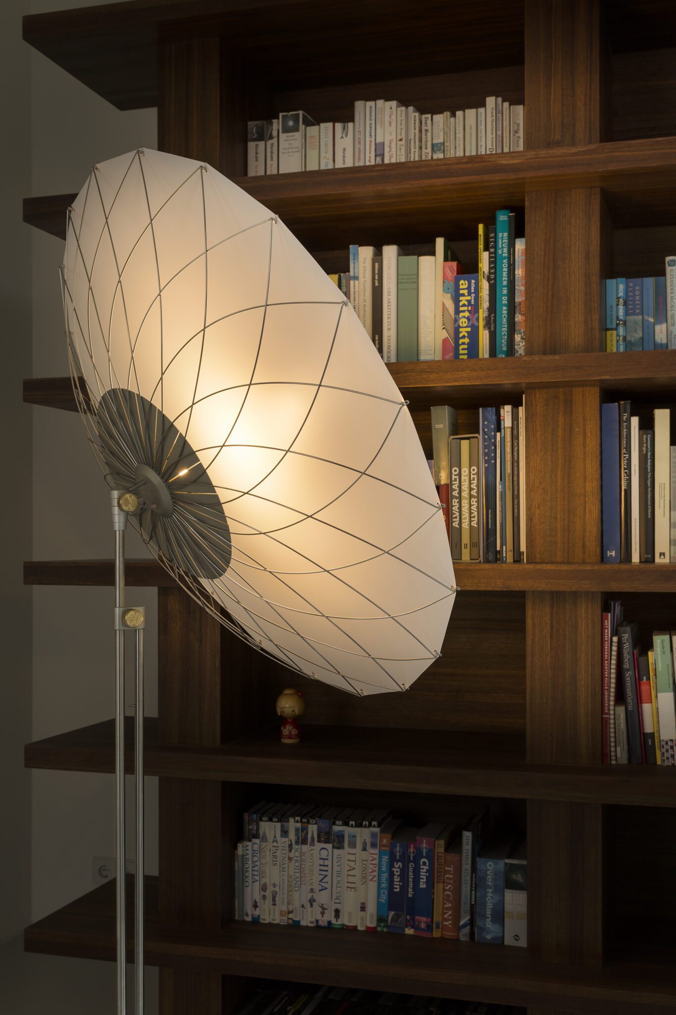 “What distinguishes a lamp from a light source?” is the question that initially triggered Rick Tegelaar to imagine and create the Filigree Floorlamp. Thanks to an elegant and dainty network of fine wires, that reminds us of delicate filigree jewelry, the translucent screen protecting the powerful LED light at the heart of the lamp is held under tension, distributing a soft light glow evenly across the room. When pointed towards a wall or ceiling, with the ornamental filigree flower structure facing us, the lamp projects a playful network of shadows to mesmerize and entertain.