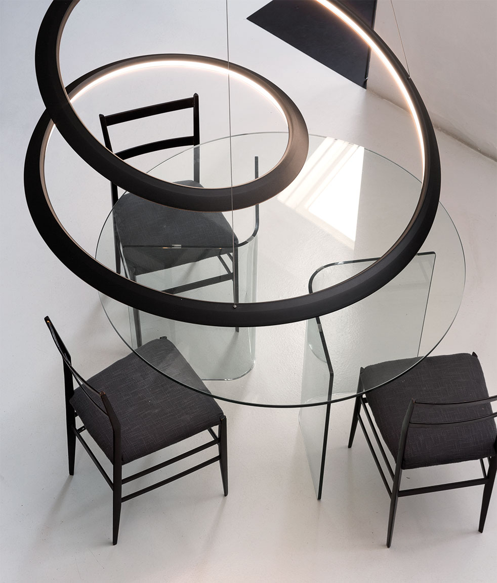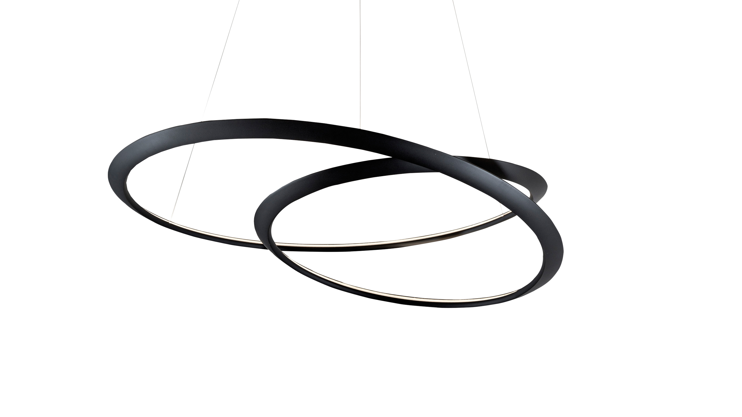 The Kepler collection is made of painted extruded aluminium, whose continuous line is obtained through a three-dimensional manufacturing process developed by Nemo. Designed on the basis of the mathematical principle of the Möbius strip. Diffuser in opaque technopolymer.