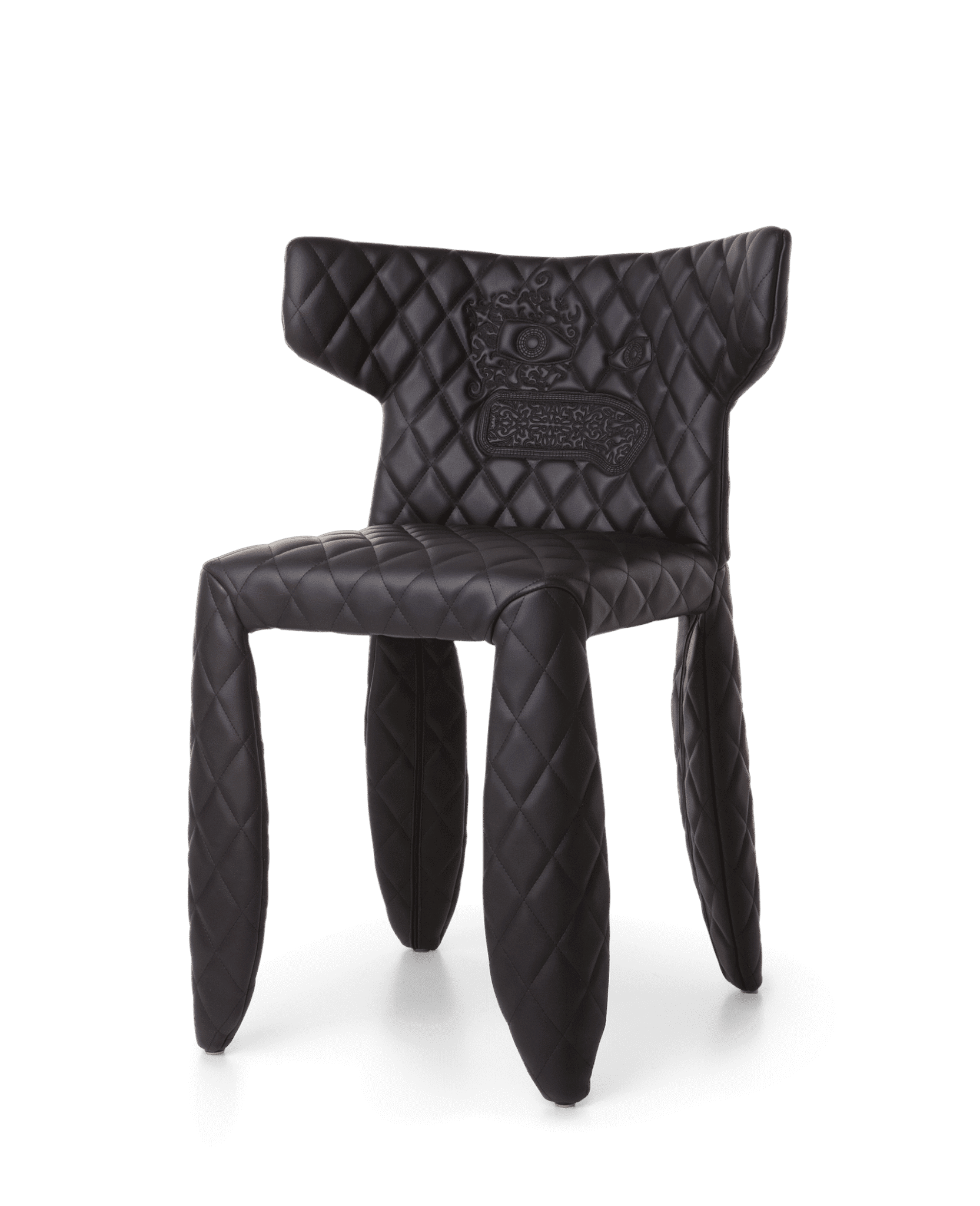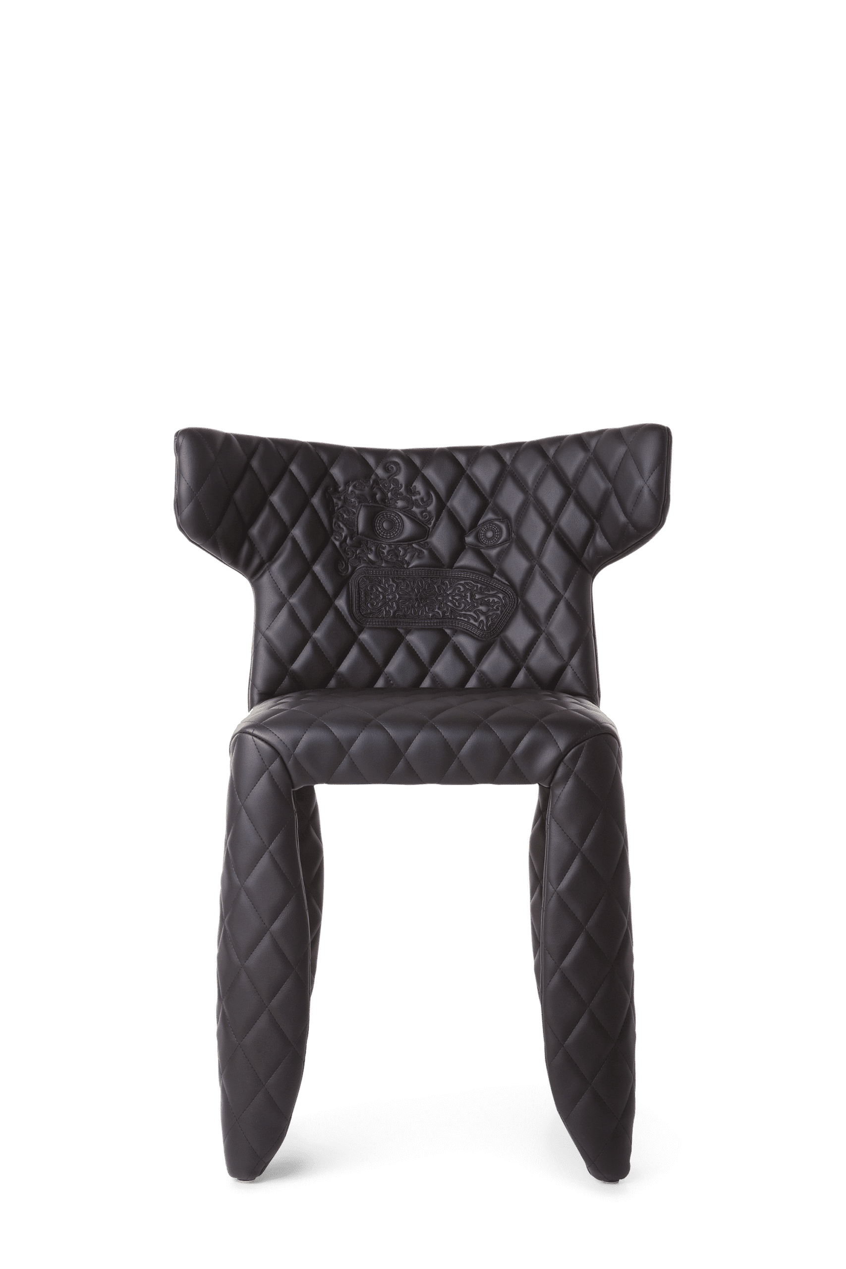 A soft, puffy and stylish chair as symbol of the eternal battle between opposite forces that take place in life and can be easily recognized inside ourselves, if we have the courage to open our eyes. Scary? Not at all! You forget all about the monster once you sit down and enjoy the chair’s comfort and softness. The signature version, the fearless leader of our Monster family, comes upholstered in Moooi Original Black Synthetic Leather with an embroidered face.